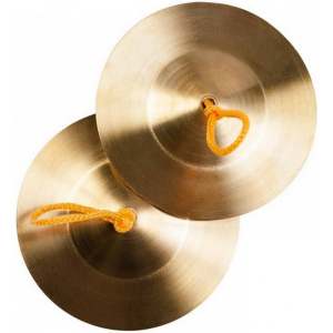 Тарелочки сделаны из металла, в них имеется отверстие для крепления петель, надевающихся на большой и средний пальцы руки.