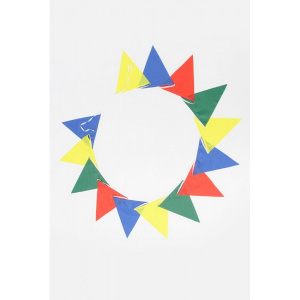 Флажки на шнуре могут использоваться в спортивных и сюжетно-ролевых играх. Флажная лента изготовлена из синтетических тканей разнообразных расцветок.