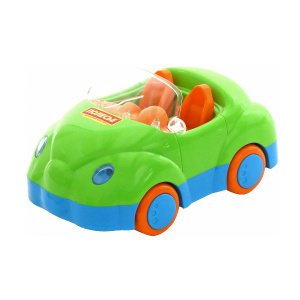 Автомобиль выполнен из яркого высококачественного пластика, имеет закругленные, крупные детали, исключающие возможность пораниться.