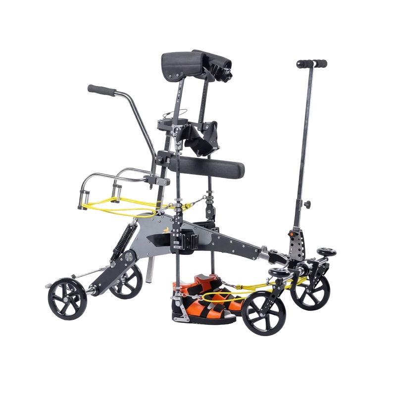 - Аппарат на нижние конечности и туловище (ортез) тренирует навыки самостоятельной ходьбы за счет фиксации суставов в физиологическом положении. В результате формируется правильный стереотип движения и предотвращается патологическая установка стоп и голеней.