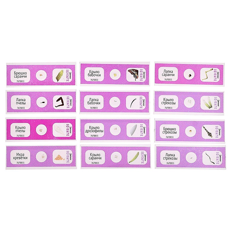 Набор микропрепаратов — это 12 слайдов с готовыми образцами для исследования под микроскопом.