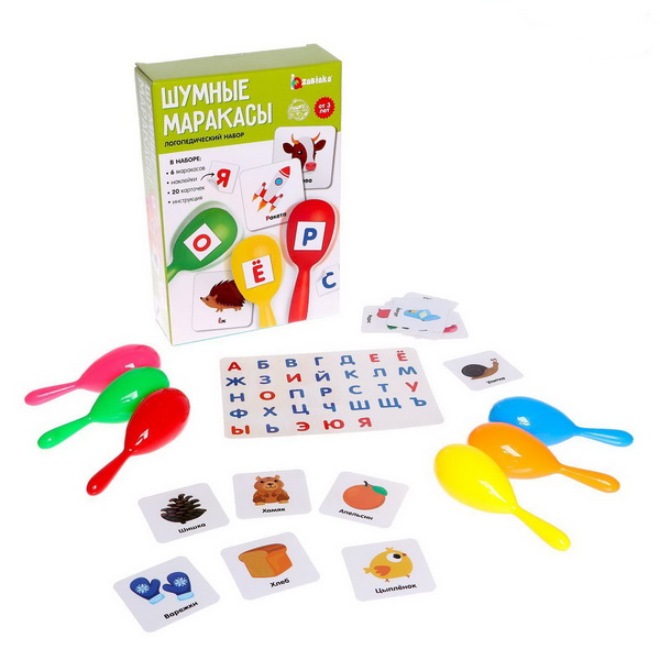Логопедический набор "Шумные маракасы" создан для детей от 3 лет. Он поможет развить слуховое восприятие, внимание, усидчивость. Задания игры направлены на формирование правильного произношения звуков, букв и корректировку имеющихся нарушений у ребёнка.