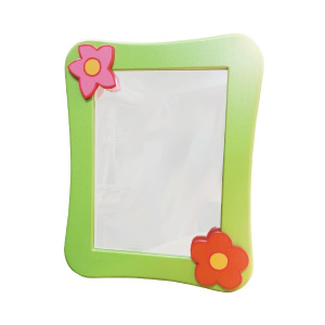 Зеркало представляет собой 4 мм серебро с защитной противоударной (противоосколочной) пленкой. Обрамлено фигурной зеленой рамой с декором в виде цветов.