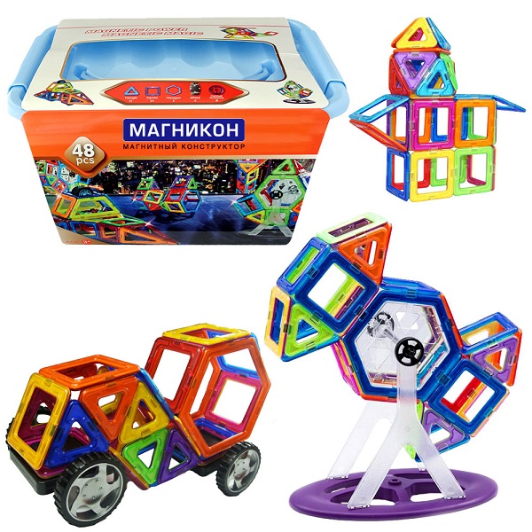 МК-48 - конструктор среднего уровня сложности. Набор рассчитан на детей от 3 до 5-6 лет, в нем 48 деталей.