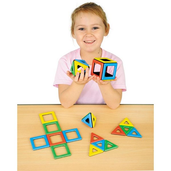 Большой конструктор из магнитных разноцветных деталей необычной формы, отлично подходит для классной проектной деятельности, творческого моделирования и изучения геометрических форм.