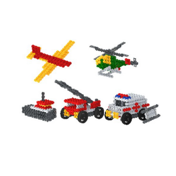 Дети научатся конструировать более 7 моделей, включая пожарную машину, носилки,машину скорой помощи,самолет, корабль, вертолет. Набор предназначен для 1 человека.