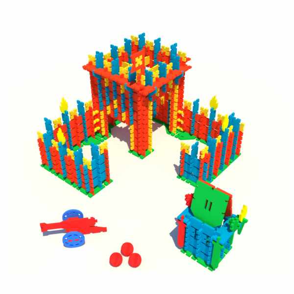 «Крепость» представляет собой набор из более 300-х деталей, что дает свободу мысли при конструировании. Можно создавать лабиринты, туннели, отдельно стоящие элементы и конструкции.