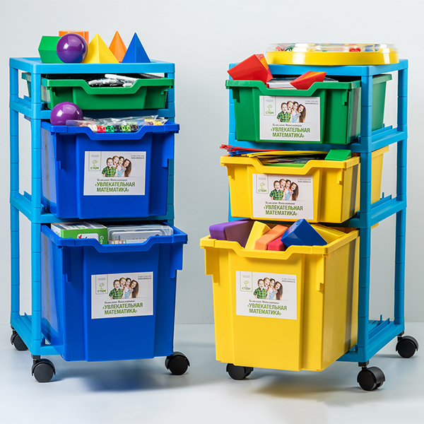 В состав комплекта входят 28 многофункциональных пособия, упакованных в безопасную и легко транспортируемую систему хранения:
