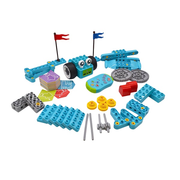 - «Умный» блок с встроенными датчиками: считает шаги, видит препятствия, ездит по черной линии.