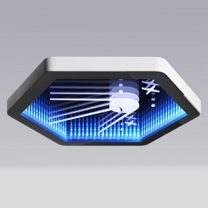 Для оформления потолка в сенсорных комнатах отлично подойдут потолочные панели. Шестигранные светильники мерцают в темноте словно иллюминатор, ведущий в глубины загадочного космоса. Это завораживает внимание малышей, нормализует работу нервной системы и успокаивает пульс, помогает расслабиться и отключится от тревожных мыслей. Потолочные панели имеют зеркальную поверхность и расположенную внутри светодиодную подсветку.