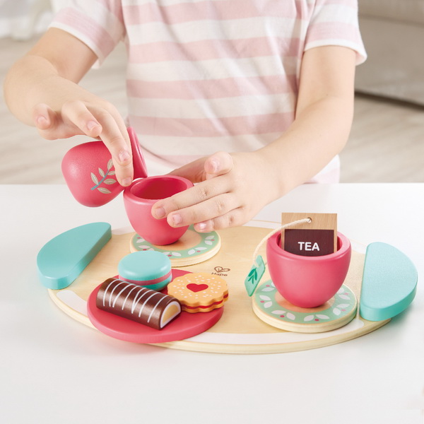 Игровой деревянный набор создан специально для сюжетно-ролевой игры, в которой маленькая хозяйка сможет устроить любимых куколкам и другим игрушкам настоящее чаепитие. Во время игры девочка будет развивать фантазию, воображение, коммуникативные навыки, а также воспитывать аккуратность, внимание к деталям и эстетический вкус.