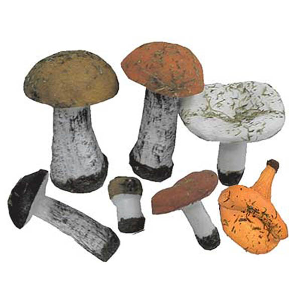 Муляжи, представленные в наборе, полностью имитируют настоящие грибы по внешнему виду, размеру, они окрашены в полностью соответствующие натуральным цвета.