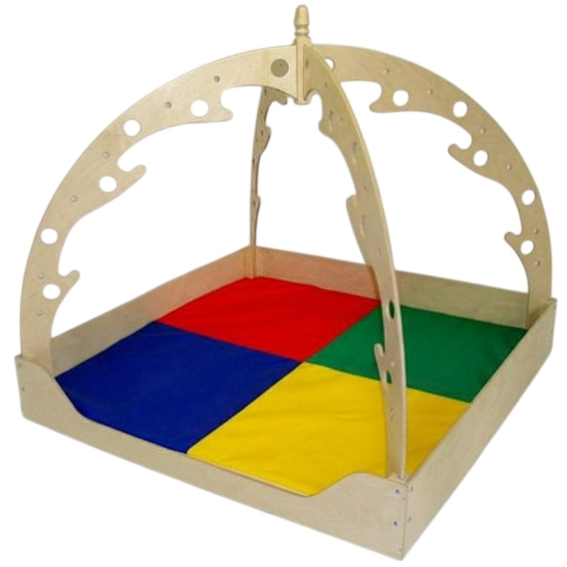 Каркас шатра выполнен из дерева, купол - из высококачественной ткани. В комплекте с шатром поставляется мягкий напольный мат.