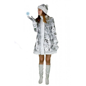 Костюм Снегурочки мини. Короткая модель среднего класса. Ткань легкий пан-бархат, с металлическим отливом на узорах. Сценический костюм для своей категории выглядит вполне достойно. Костюм Снегурочки на подкладке. Для отделки костюма применен белый мех. По полочкам и рукавам украшена серебряной тесьмой.