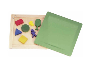Игра состоит из нескольких деревянных фигурок - человечек, дерево, утка - различного размера, а также 4 геометрических фигуры - треугольник, квадрат, круг и прямоугольник. Для игры фигурки помещаются на деревянную подставку, входящую в комплект и закрываются деревянной рамкой с натянутой на нее полупрозрачной тканью.