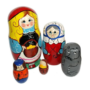 Матрёшка из пяти кукол, созданная по мотивам известной сказки "Красная шапочка" для сюжетно-ролевых игр и проигрывания сказок.